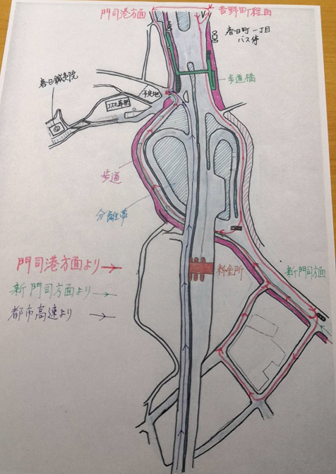 ・新門司方面からの場合は、春日インターを目指して頂き、手前を左折して都市高速の下をくぐったところが当院入り口です。